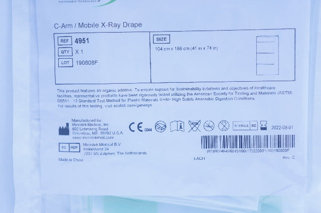 - Microtek 4951 Genesys ECOLAB C-Arm/Mobile X-Ray Drape 41inch x 74inch