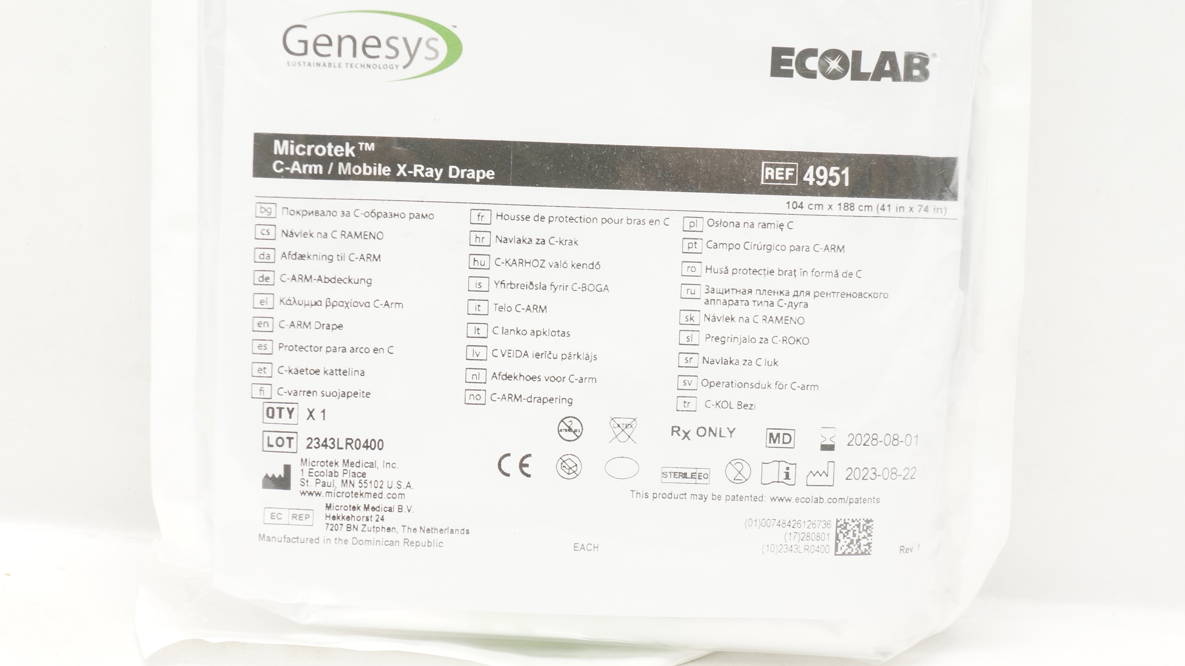 - Microtek 4951 Genesys Ecolab C-Arm Mobile X-Ray Drape 41inch x 74inch