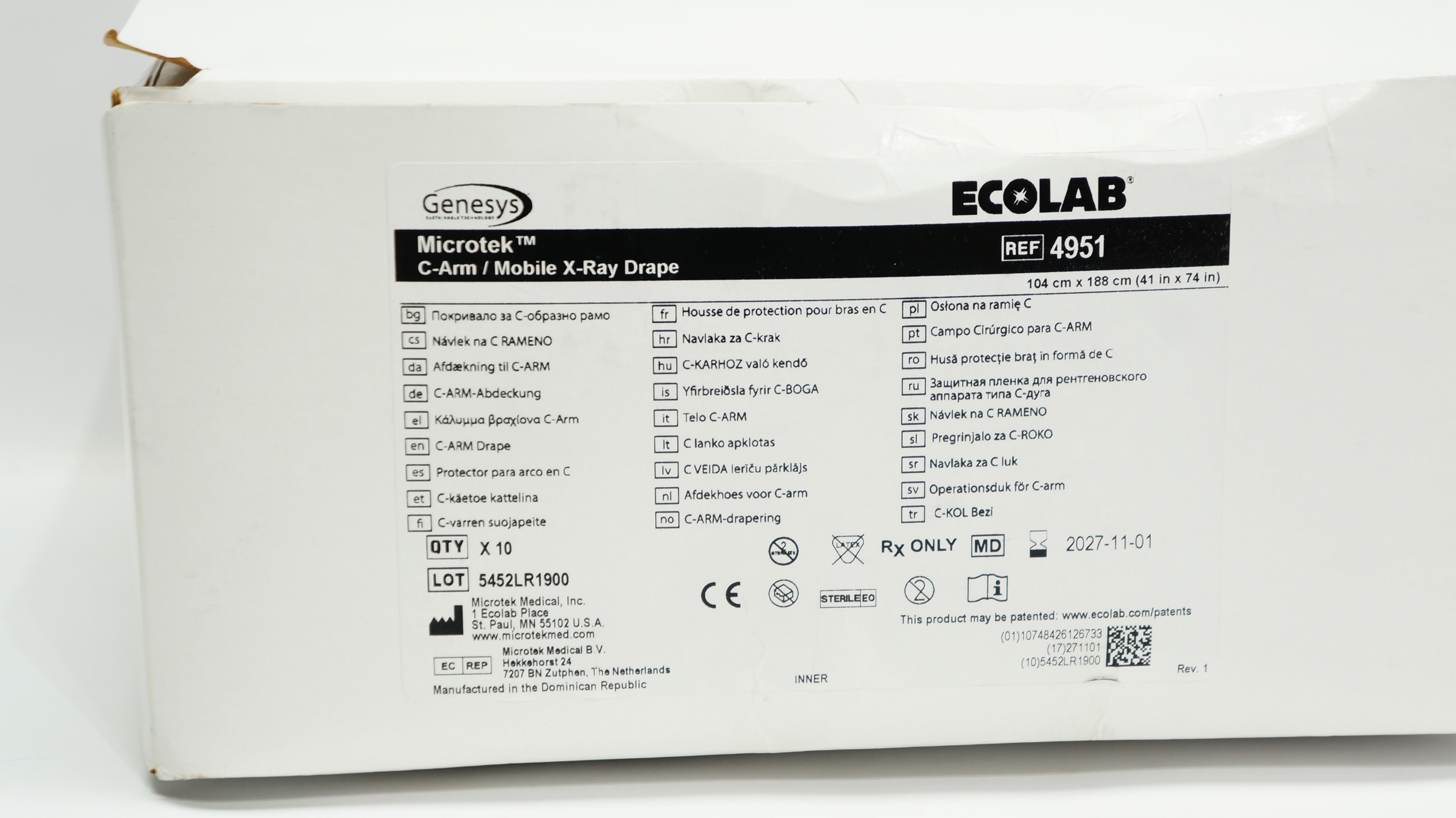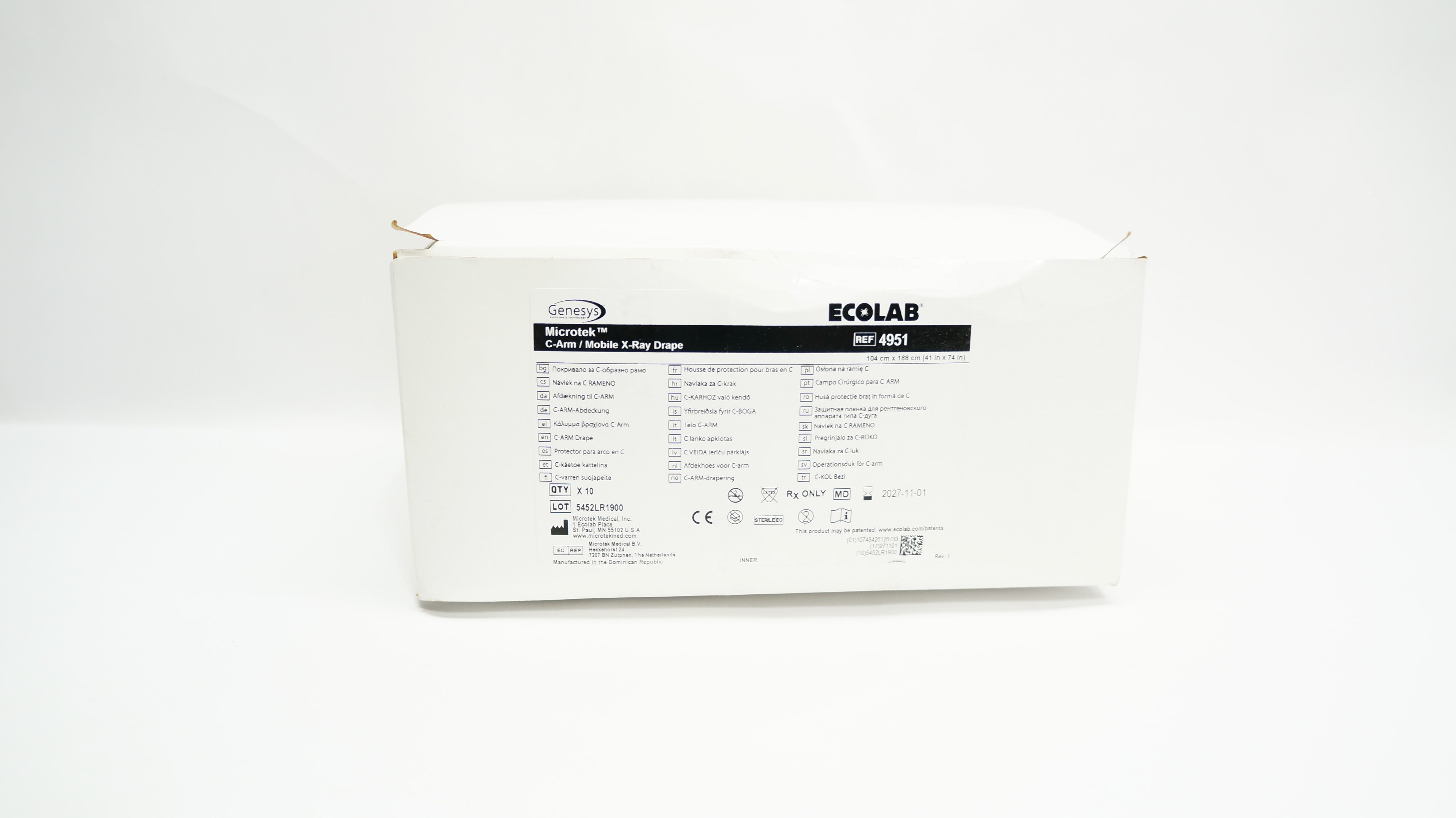 Microtek 4951 Genesys Ecolab C-Arm Mobile X-Ray Drape 41inch x 74inch - Box of 10