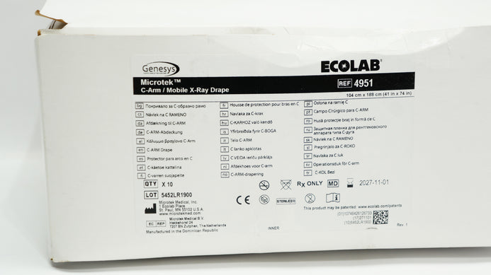 - Microtek 4951 Genesys Ecolab C-Arm Mobile X-Ray Drape 41inch x 74inch - Box of 10