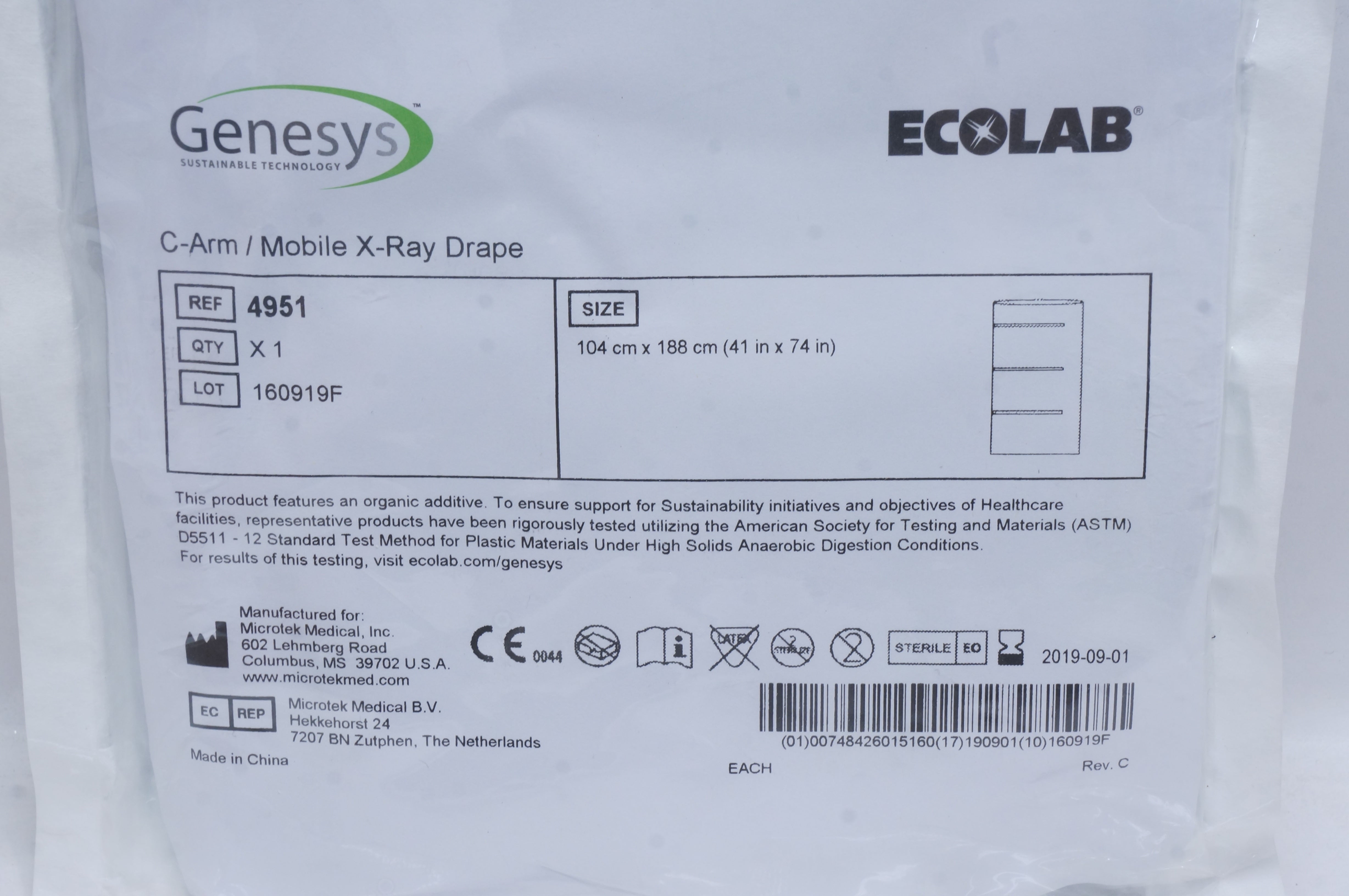 - Microtek 4951 Genesys ECOLAB C-Arm/Mobile X-Ray Drape 41inch x 74inch (x)