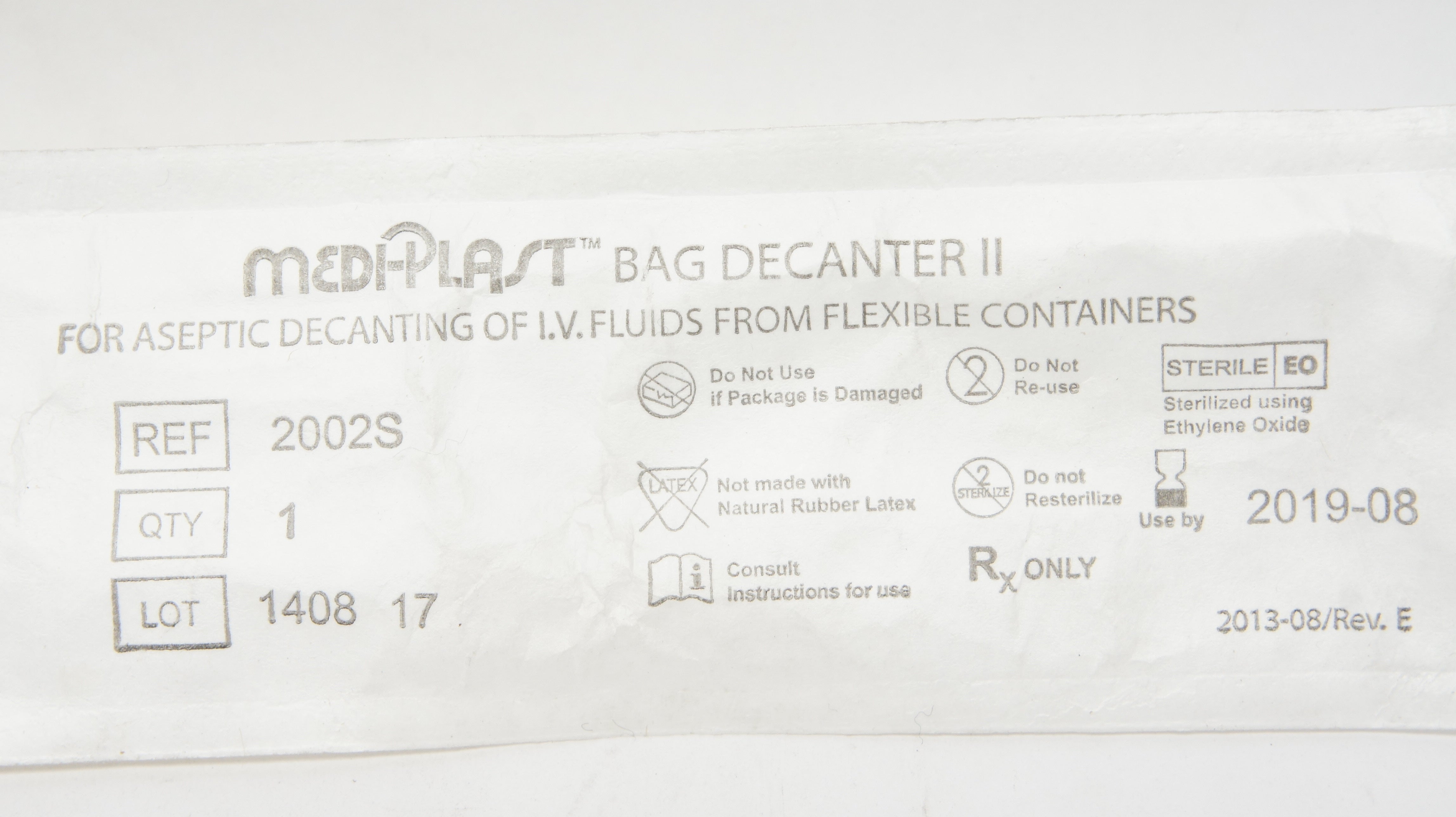 For Aseptic Decanting Of I.V. Fluids From Flexible Containers