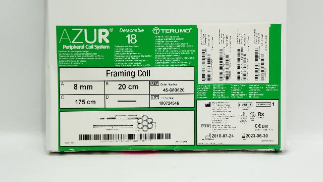 MicroVention 45-680820 Terumo Azur Detachable 18 Peripheral Framing Coil System 8mm x 20cm