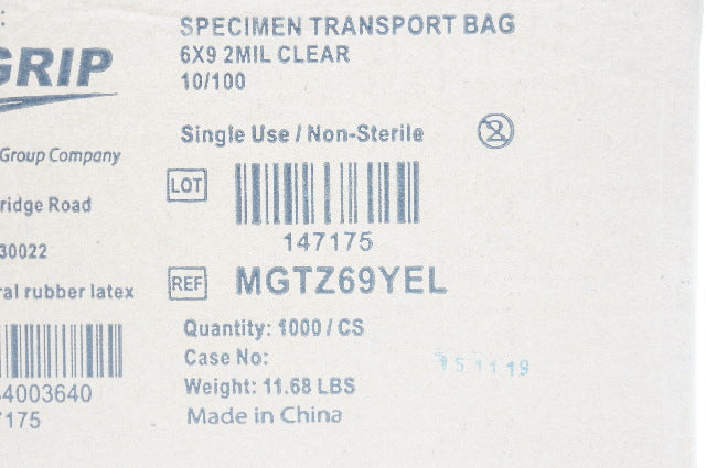 - Minigrip MGTZ69YEL Specimen Transport Bag 6x9 2 mil clear – Case of 1000