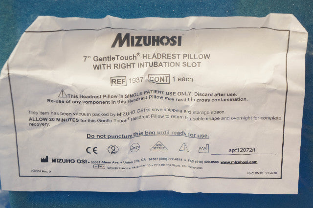 Mizuhosi 1937 7inch GentleTouch Headrest Pillow With Right Intubation Slot