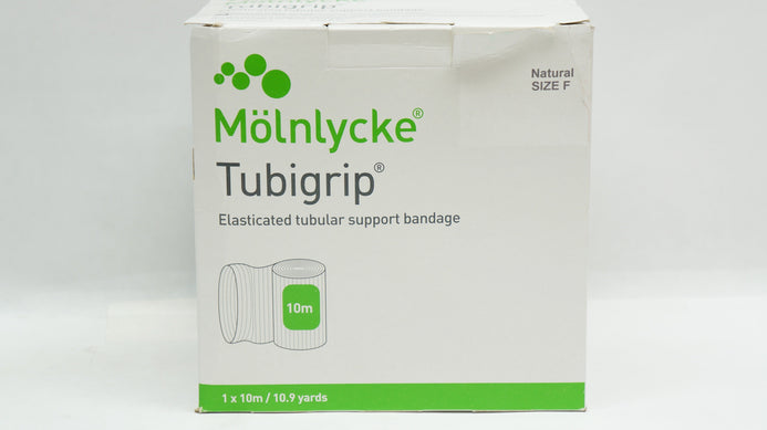 - Molnlycke 1438 Tubigrip Elasticated Tubular Support Bandage 1x10m/10.9yds Size F