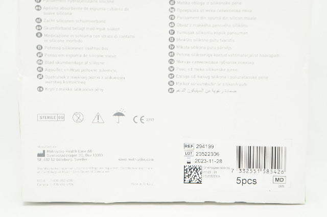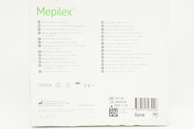 - Mölnlycke 294199 Mepilex Soft Silicone Foam Dressing 4inch x 4inch - Box of 5