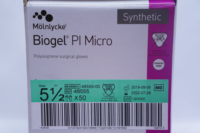 - Mölnlycke 48555 PI Micro Polyisoprene Surgical Gloves 5 1/2 - Box of 48