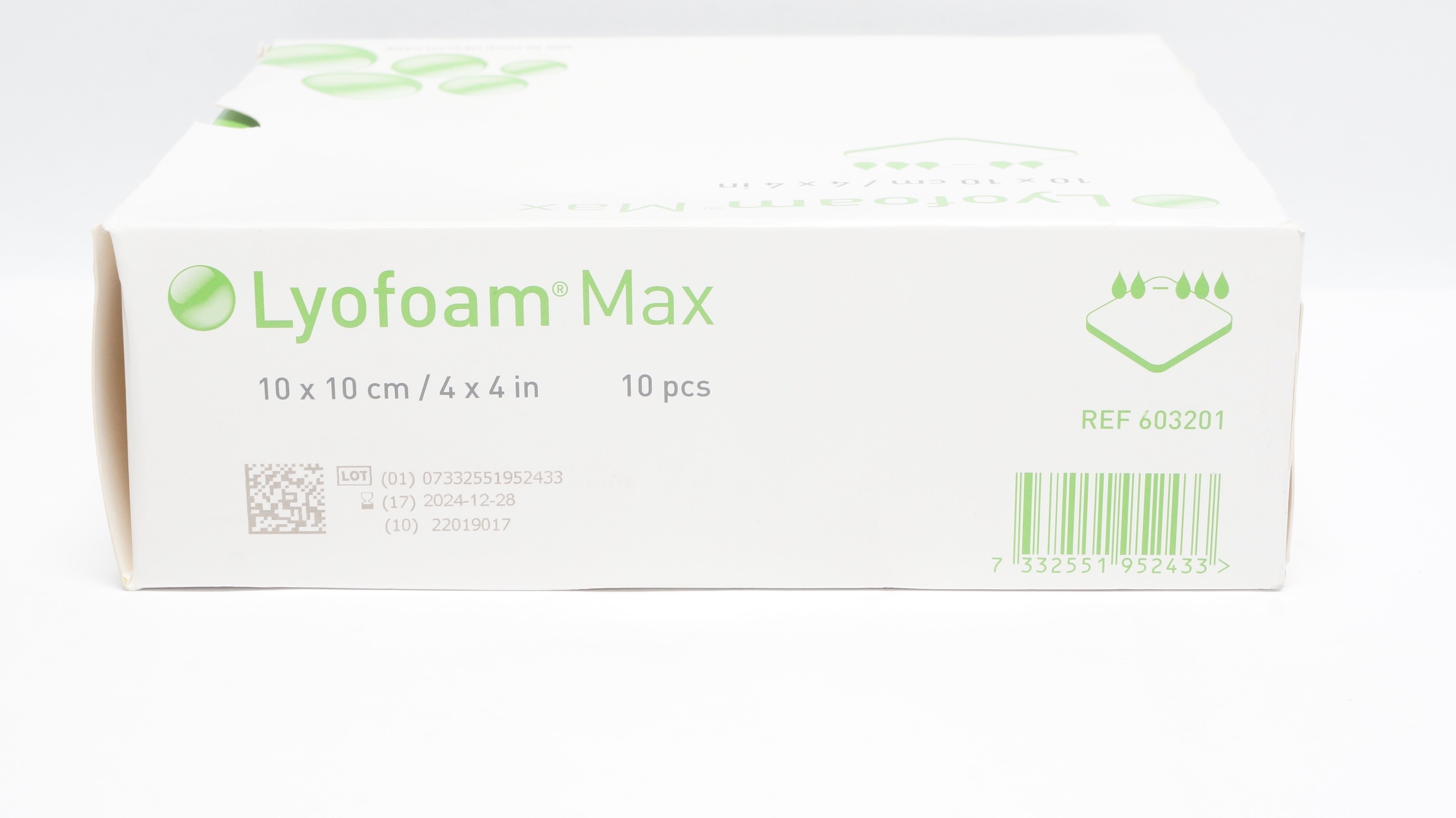 - Molnlycke 603201 Lyofoam Max Absorbent Foam Dressing 4 x 4inch (x) - Box of 10
