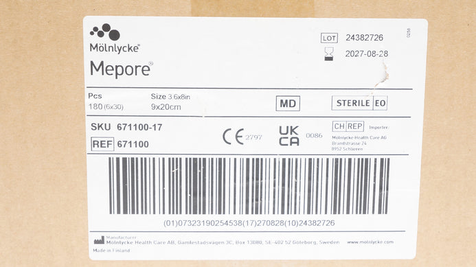 - Mölnlycke 671100 Mepore Adhesive Surgical Dressing 3.6 x 8In - Box of 180