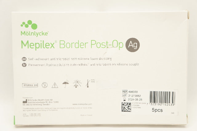 - Molnlycke Health Care 498300 Mepilex Border Post-On Ag 4 x 6inch - Box of 5