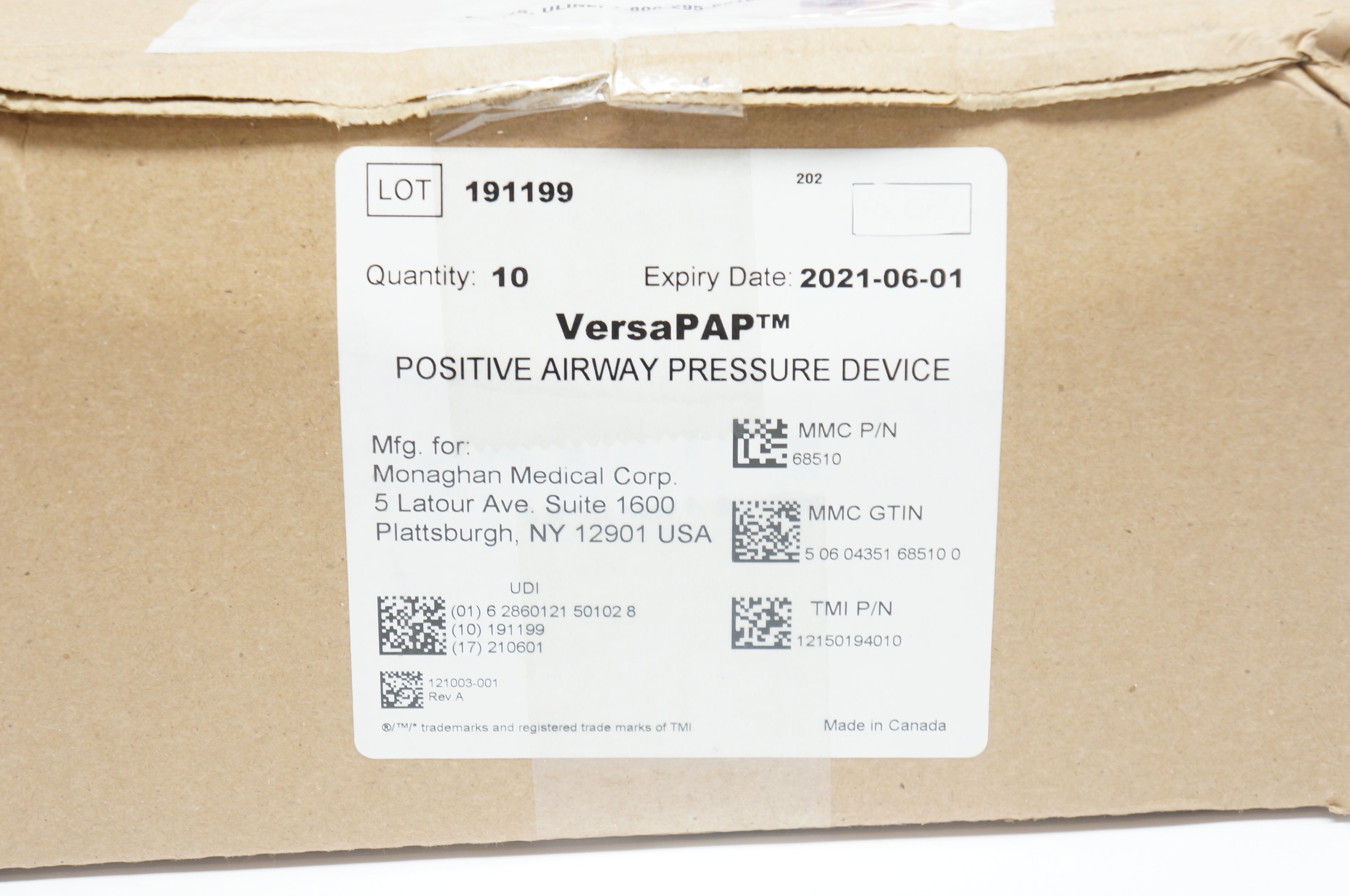 - Monaghan Medical VersaPAP Positive Airway Pressure Device - Case of 10
