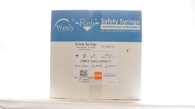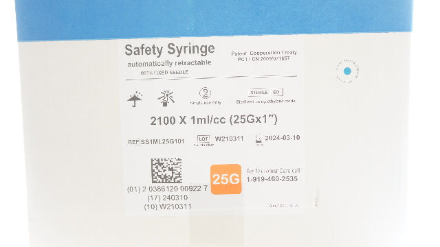 - Myco SS1ML25G101 Safety Syringe w/Fixed Ndle 1ml/cc 25G x 1inch - Case of 2100
