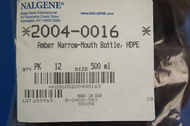 Nalgene 2004-0016 Amber Narrow-Mouth Bottle, HDPE Size 500ml ~ Pack of 12