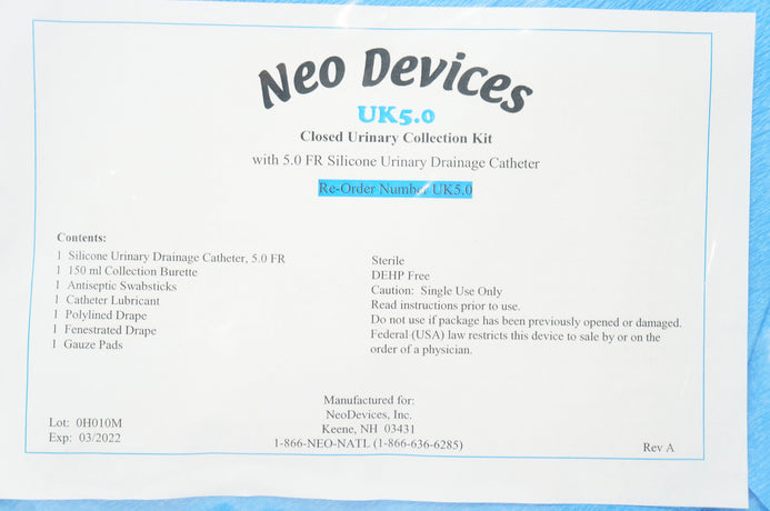 NeoDevices UK5.0 Closed Urinary Collection Kit w/5.0Fr Urinary Drainage Cath.(x)