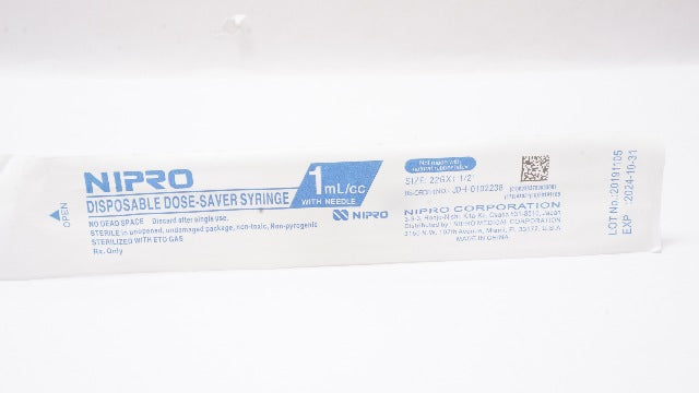 - Nipro JD+01D2238 Disposable Syringe with Ndle, 1mL, 22G x 1-1/2inch