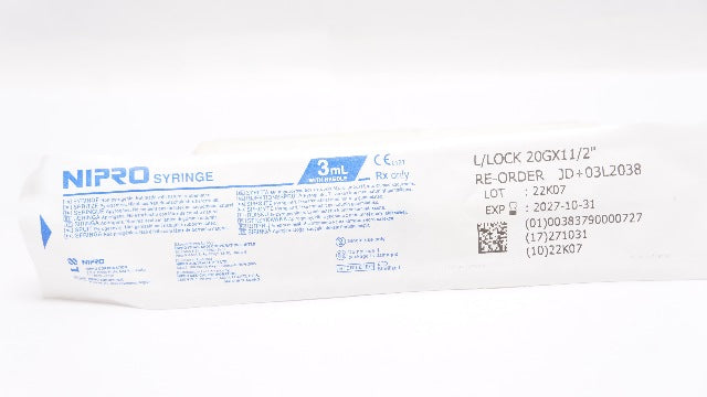 - Nipro JD+03L2038 L/Lock Syringe 20G x 11/2inch w/Ndle, 3mL