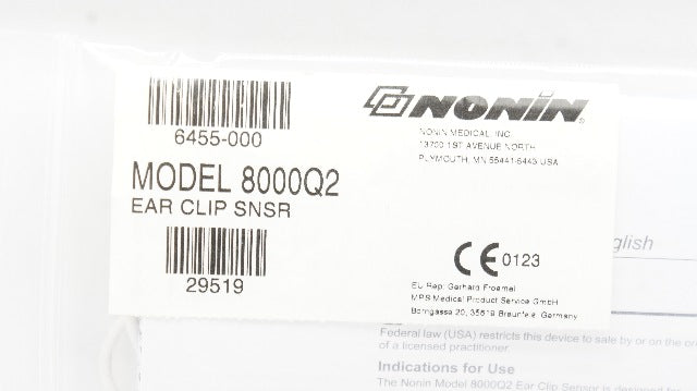 - Nonin 8000Q2 Reusable Ear Clip Pulse Oximetry Sensor