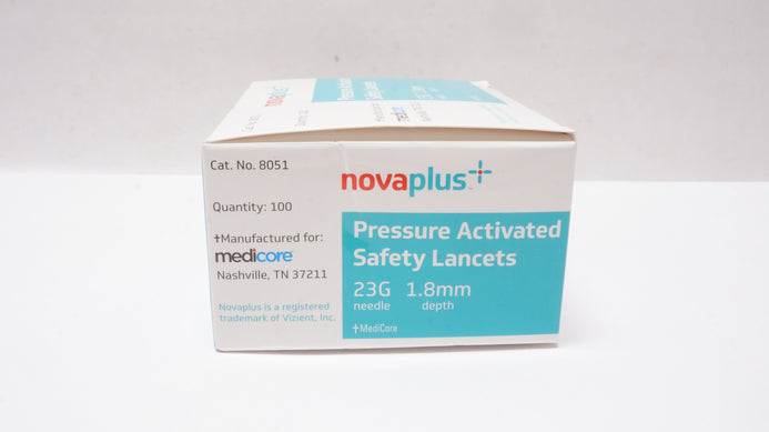 - NovaPlus 8051 Medicore Pressure Activated Safety Lancets 23G 1.8mm - Box of 100