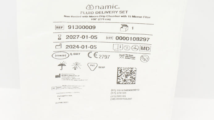 - Medline 91300009 Namic Fluid Delivery Set Non-Vented w/15Micron Filter 108inch