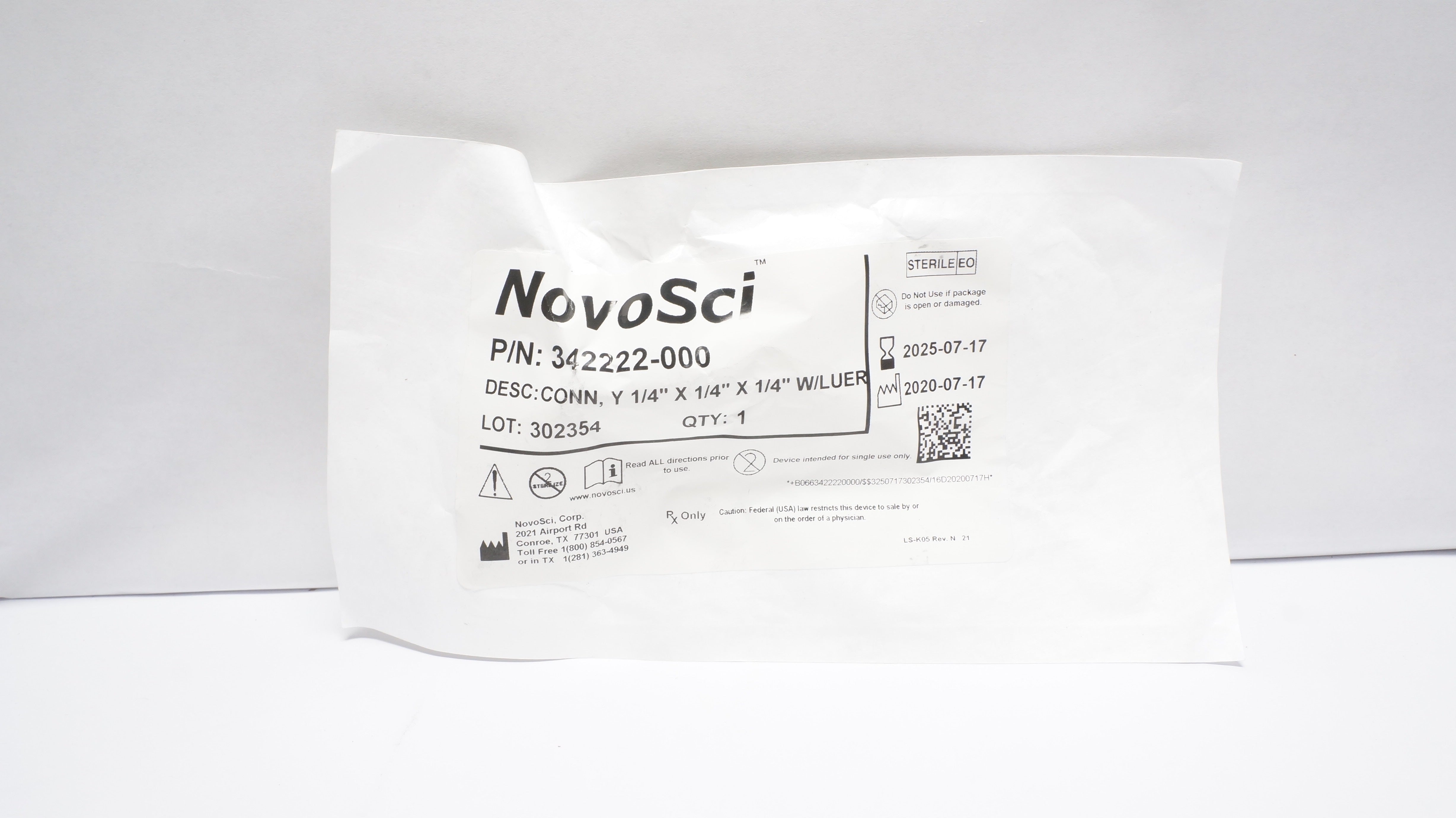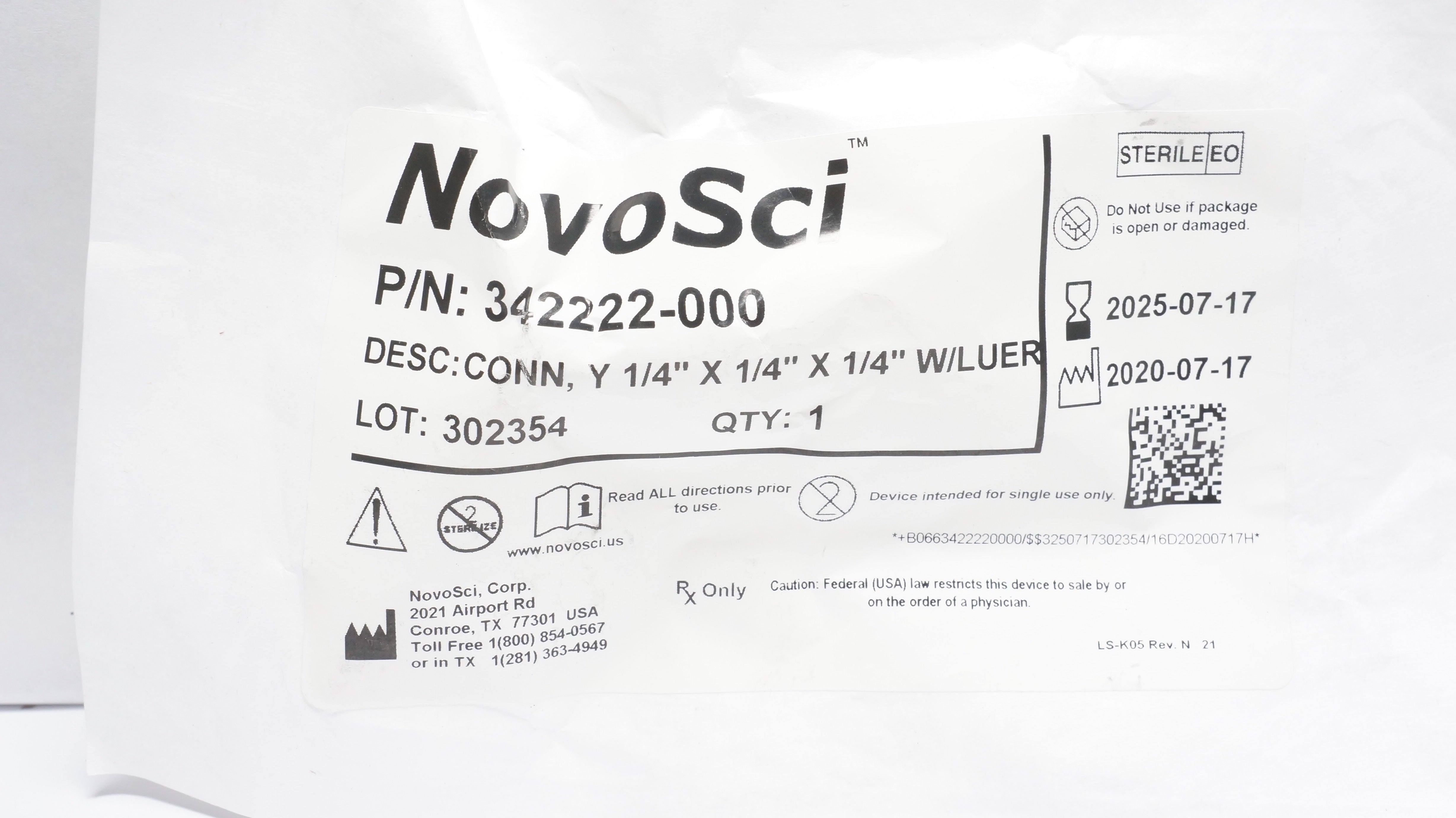 NovoSci 342222-000 Y Connector 1/4inch x 1/4inch x 1/4inch with Luer