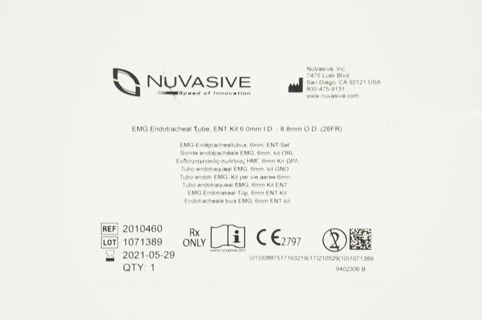 NuVasive 2010460 EMG Endotracheal Tube, ENT Kit 6.0mm ID x 8.8mm OD (x)