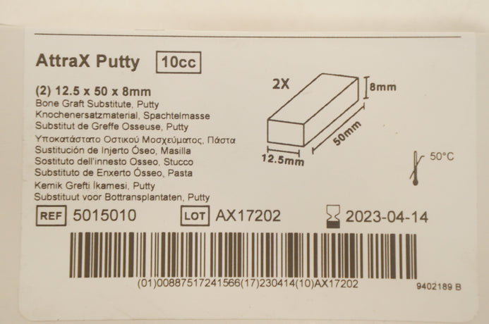 - Nuvasive 5015010 Attrax Putty Bone Graft Substitute 12.5 x 50 x 8mm 10cc