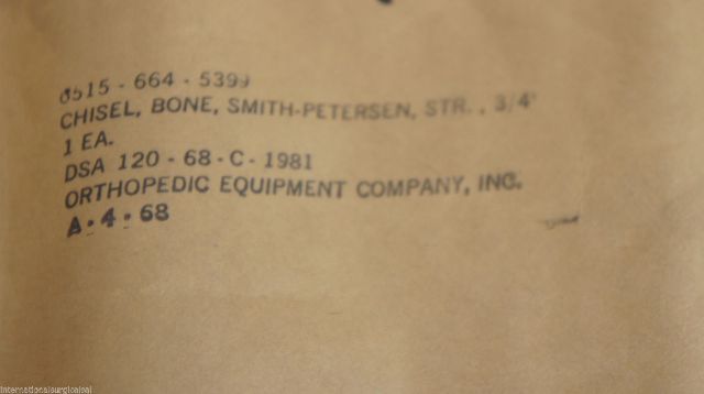Iii part name assigned by controlling agency: chisel bone smith-peterson 8.125 in lg, 0.75 in. cut w str dbl bevel crs
