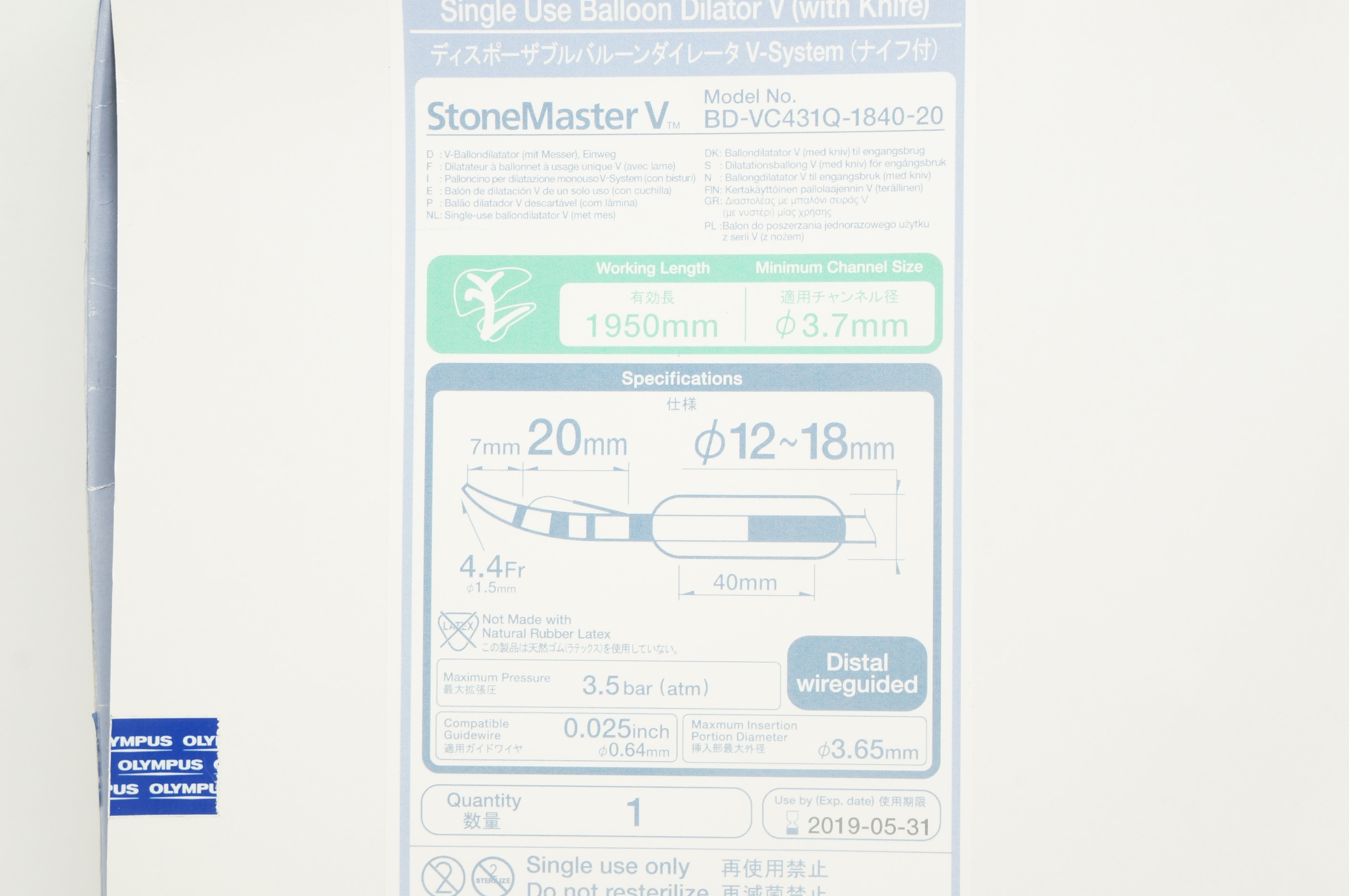 - Olympus BD-VC431Q-1840-20 Balloon Dilator V StoneMaster 1950mm x 3.7mm (x)
