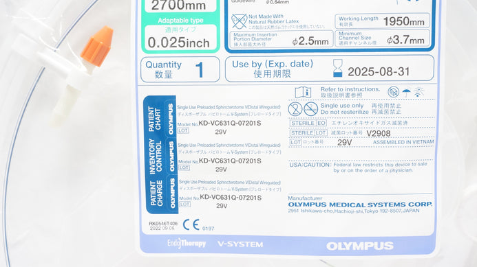 - Olympus KD-VC631Q-07201S Single Use Preloaded Sphincterotome V 2700 x 0.025In(x)