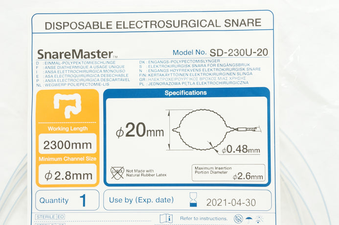 - Olympus SD-230U-20 SnareMaster Soft Electrosurgical Snare 2.8mm x 2300mm