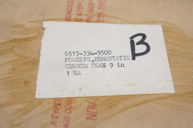 Iii part name assigned by controlling agency: forceps hemo pean design slightly curved jaw 9"o/a lg crs