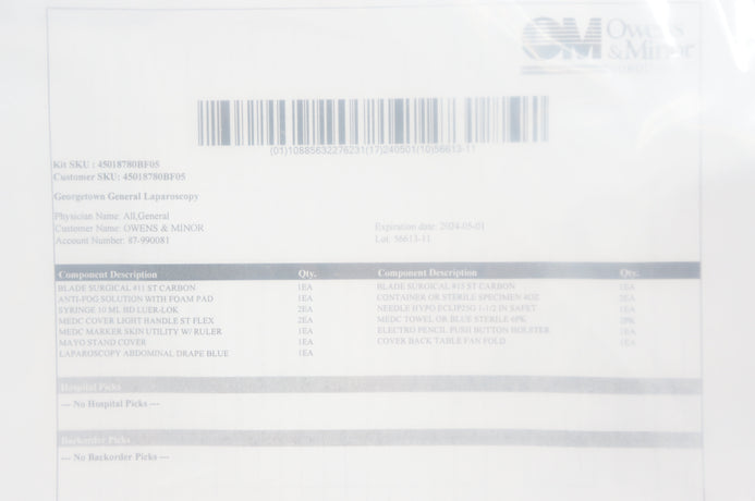 - Owens&Minor Georgetown General Laparoscopy Kit 14 Components