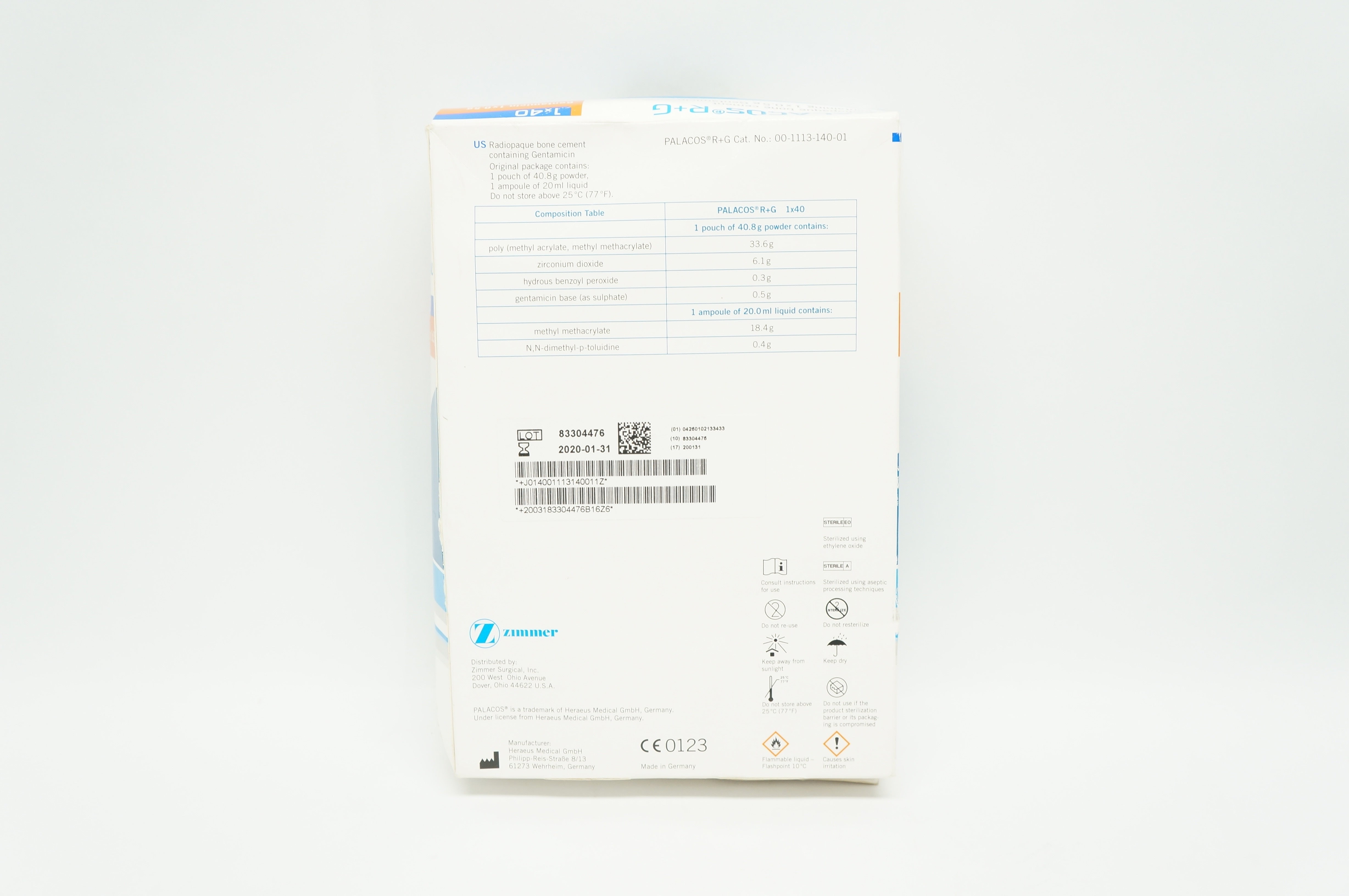 - Palacos 00-1113-140-01 R+G Zimmer Heraeus Radiopaque Bone Cement 1x40 (x)