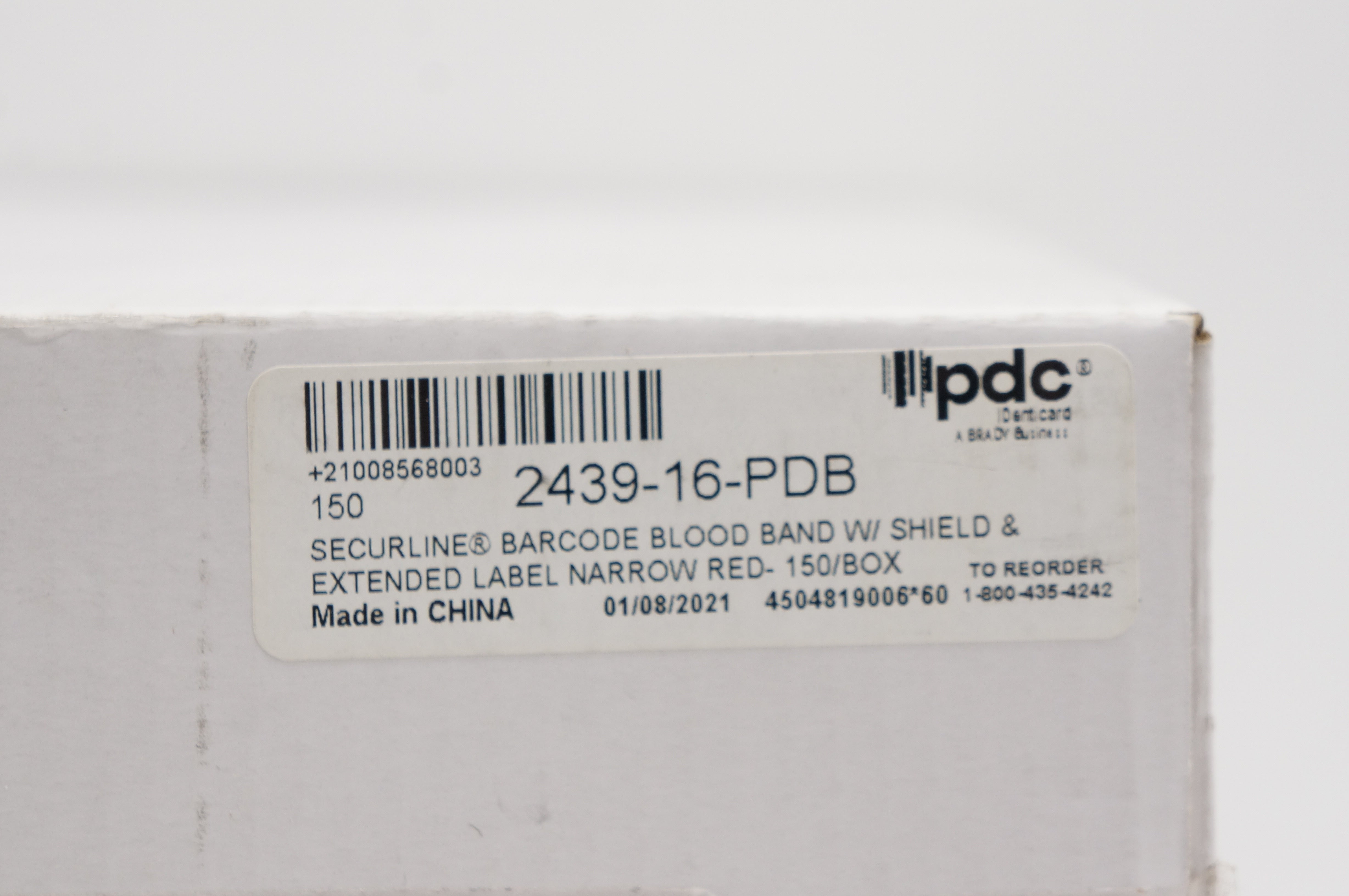 - PDC 2439-16-PDB Securline Barcode Blood Band Narrow Red - Box of 150 (x)
