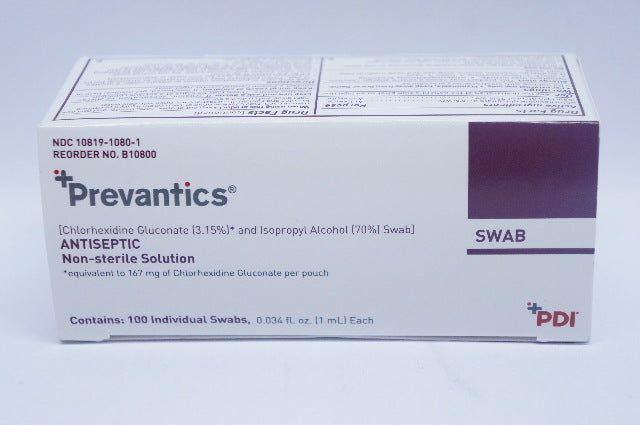 PDI B10800 Prevantics Chlorhexidine Gluconate (3.15%) and Isopropyl Alcohol (70%) Swab Antiseptic 1ml