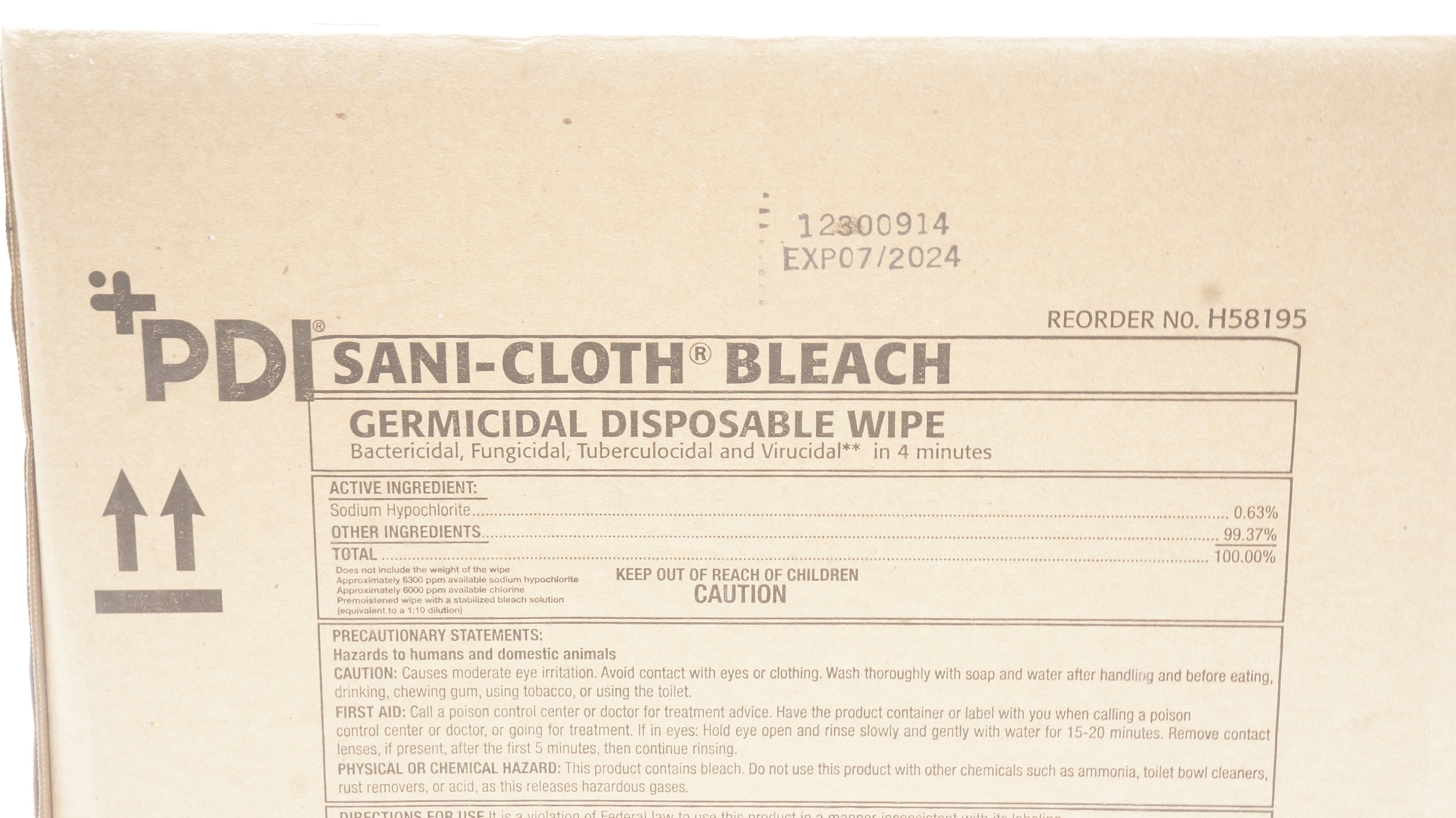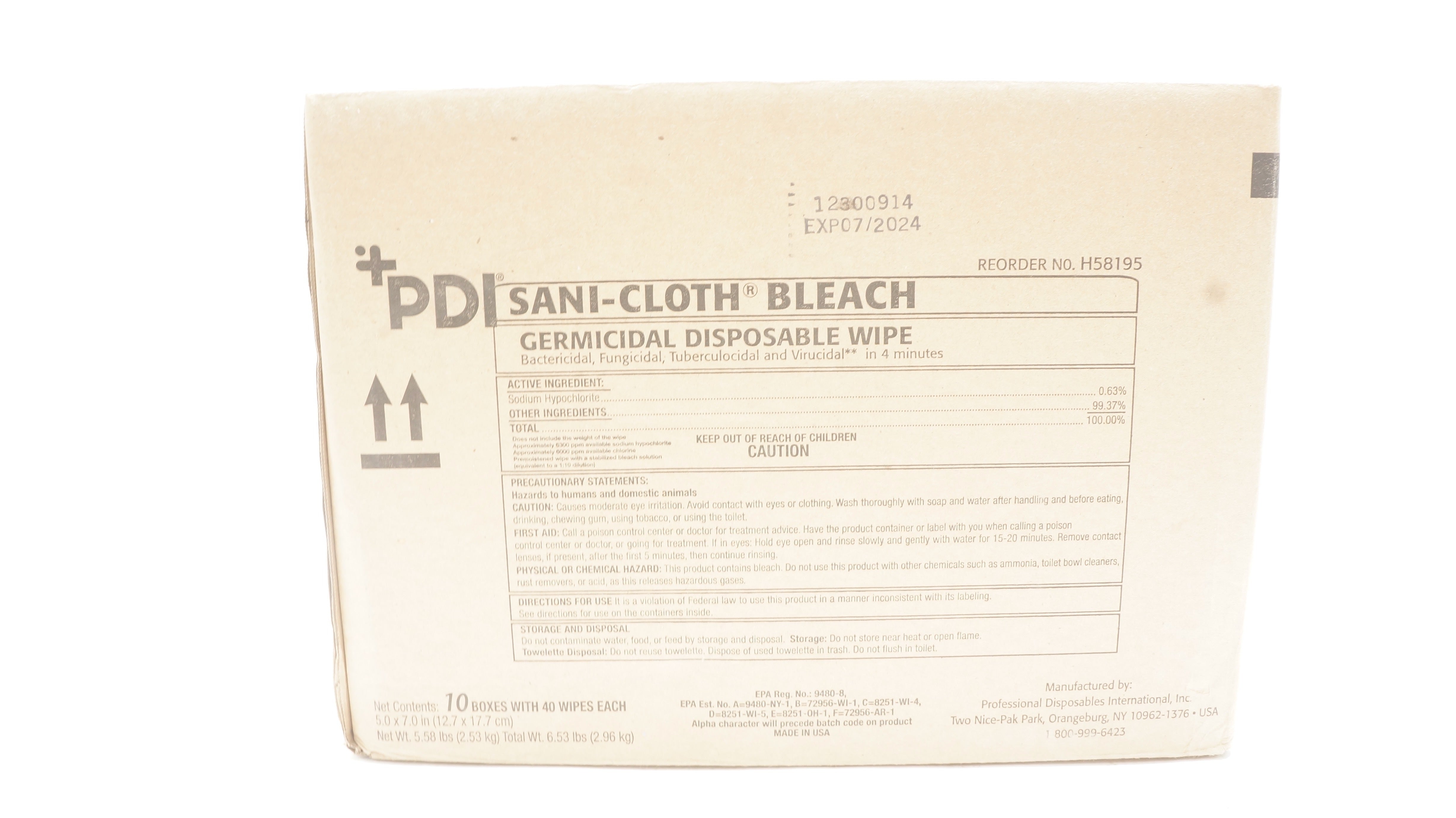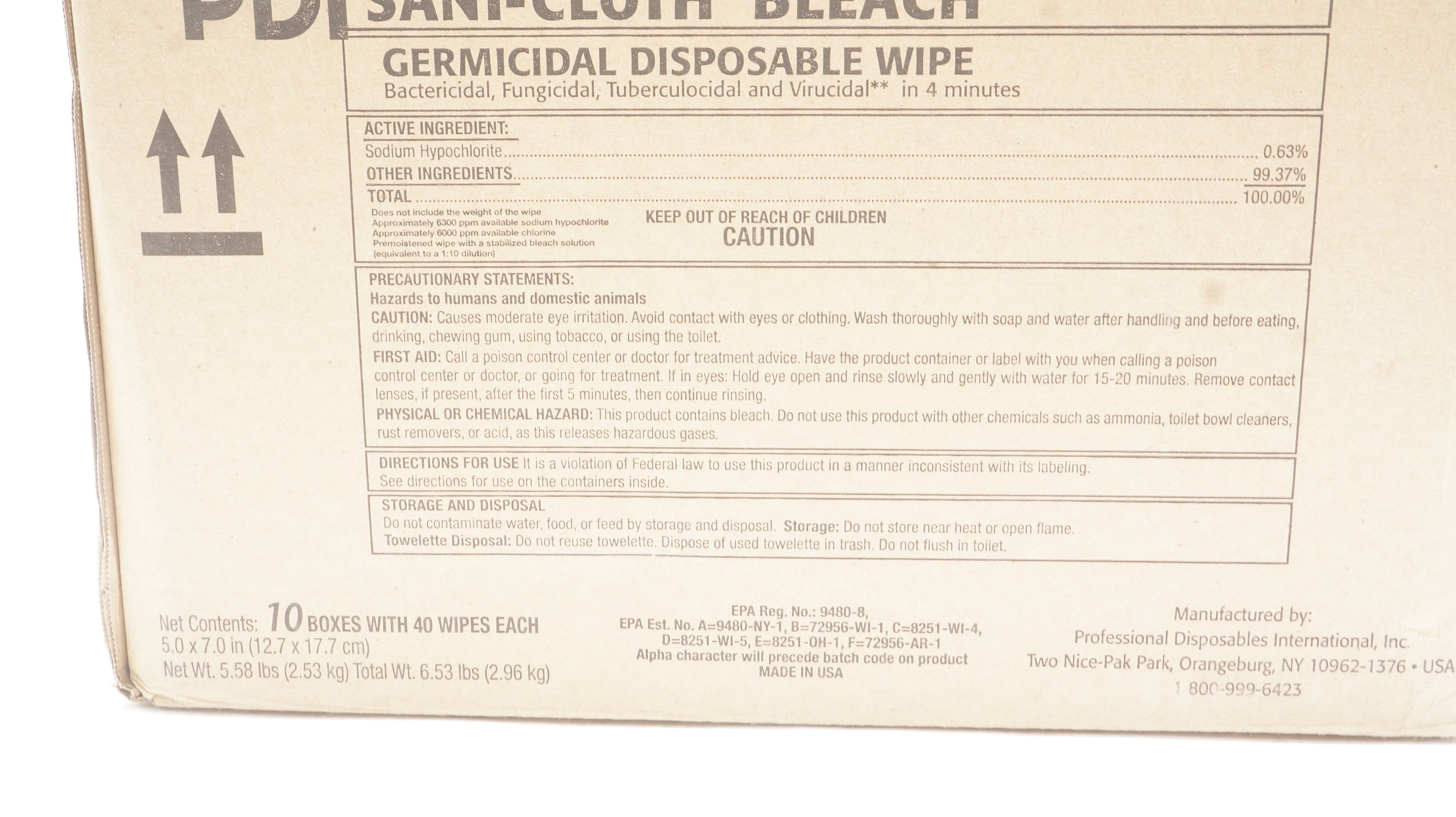 PDI H58195 SANI-CLOTH Bleach Germicidal Disposable Wipe,Large 5x 7in-Case of 400