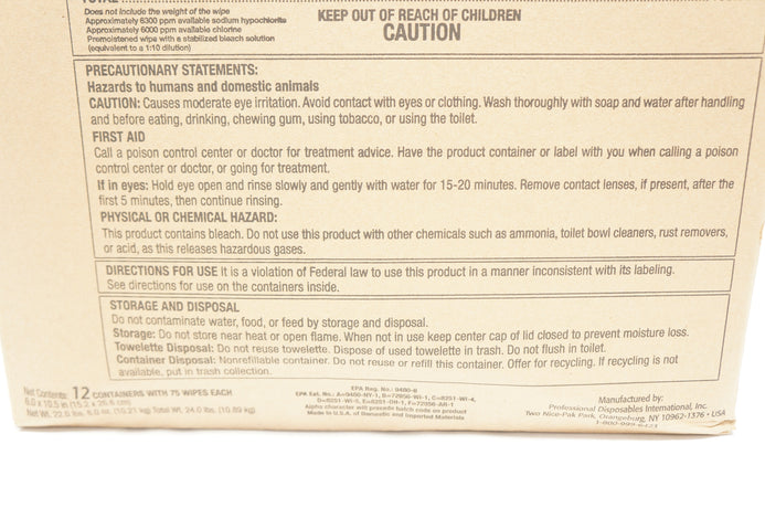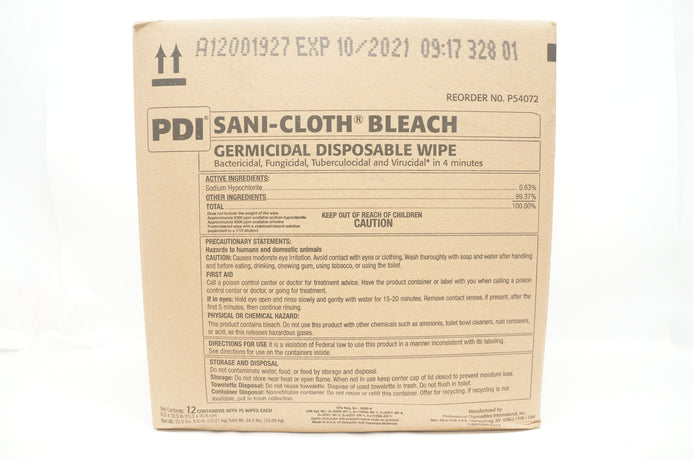 - PDI P54072 SANI-CLOTH BLEACH Germicidal Disposable Wipe, 75 Wipes - Case of 12