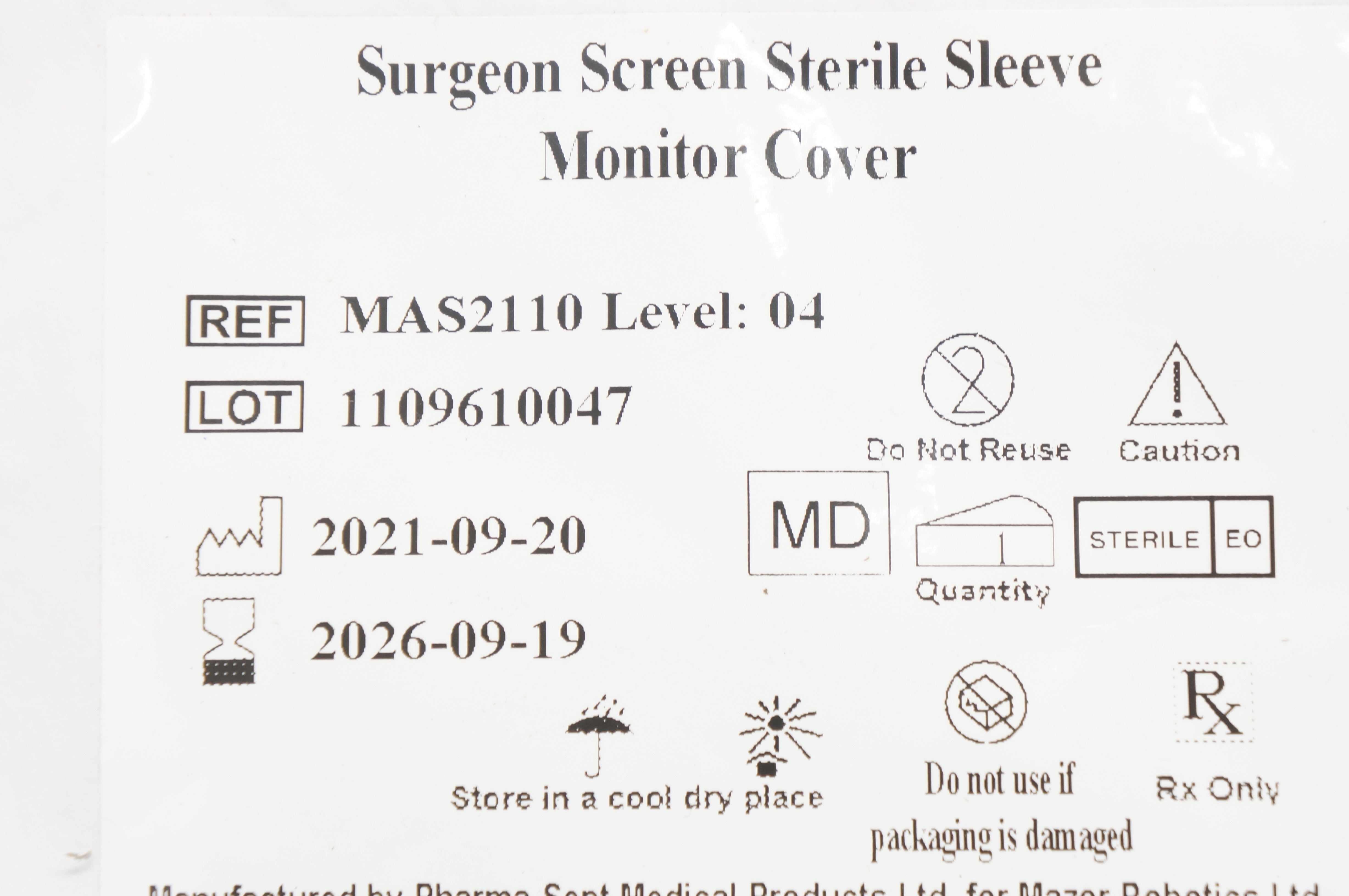 Pharma-Sept MAS2110 Level: 04 Surgeon Screen Sterile Sleeve Monitor Cover