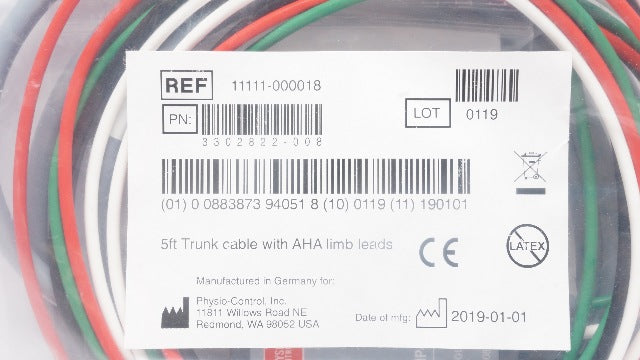 - Physio-Control 11111-000018 Trunk Cable with AHA Limb Leads 5ft.