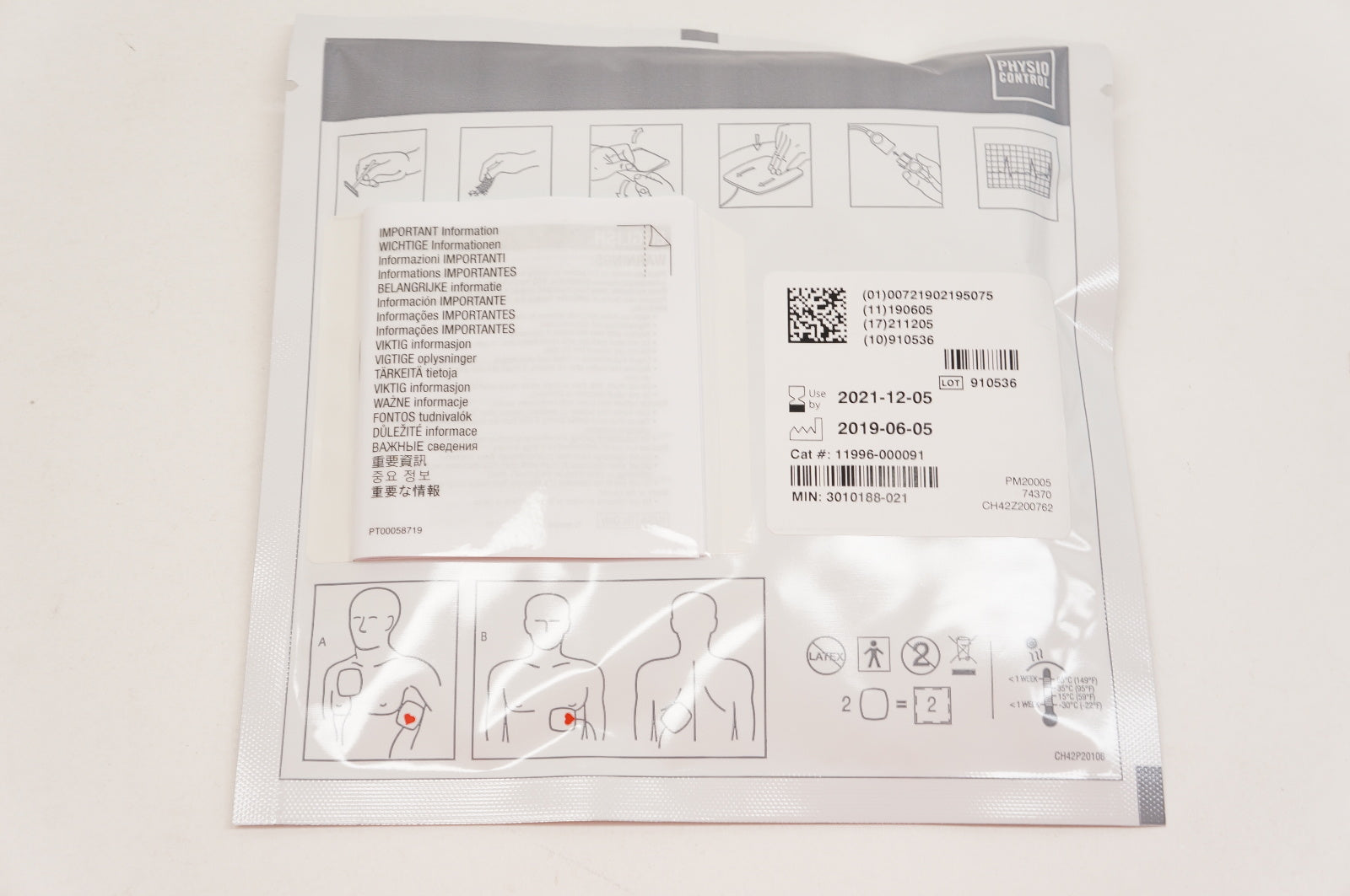 Physio-Control 11996-000091 QUIK-COMBO Adult Pacing Defibrillation ECG-Box of 10