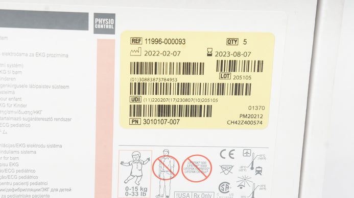 - Physio Control 11996-000093 Pediatric ECG Electrodes 0-33lb. (x) - Box of 5