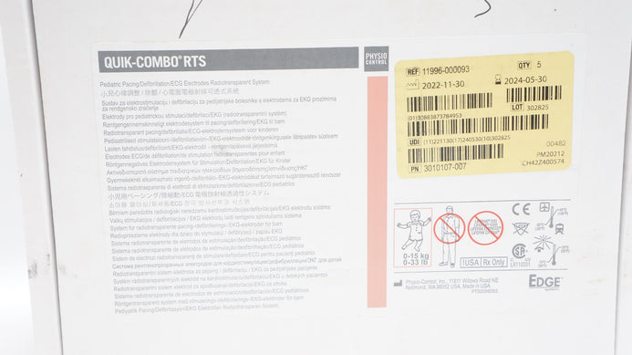 - Physio Control 11996-000093 Quik-Combo RTS ECG Electrodes 0-33lb. (x) - Box of 5