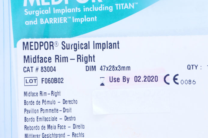 - Porex 83004 Medpor Surgical Implant Midface Rim, Right 47 x 28 x 3mm (x)