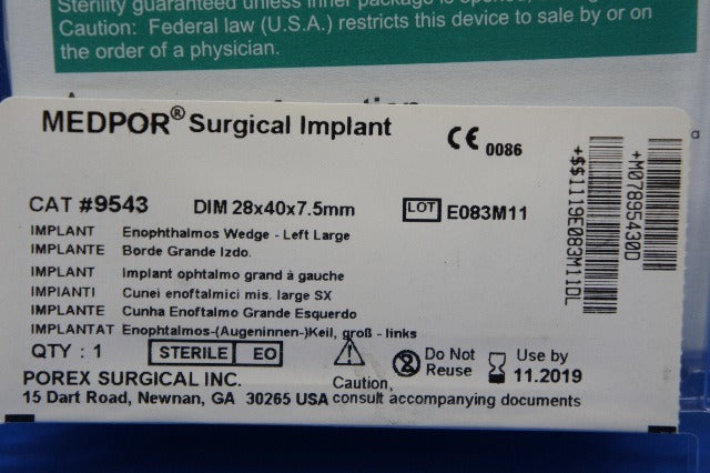Porex 9543 MEDPOR Surgical Implant 28 x 40 x 7.5mm
