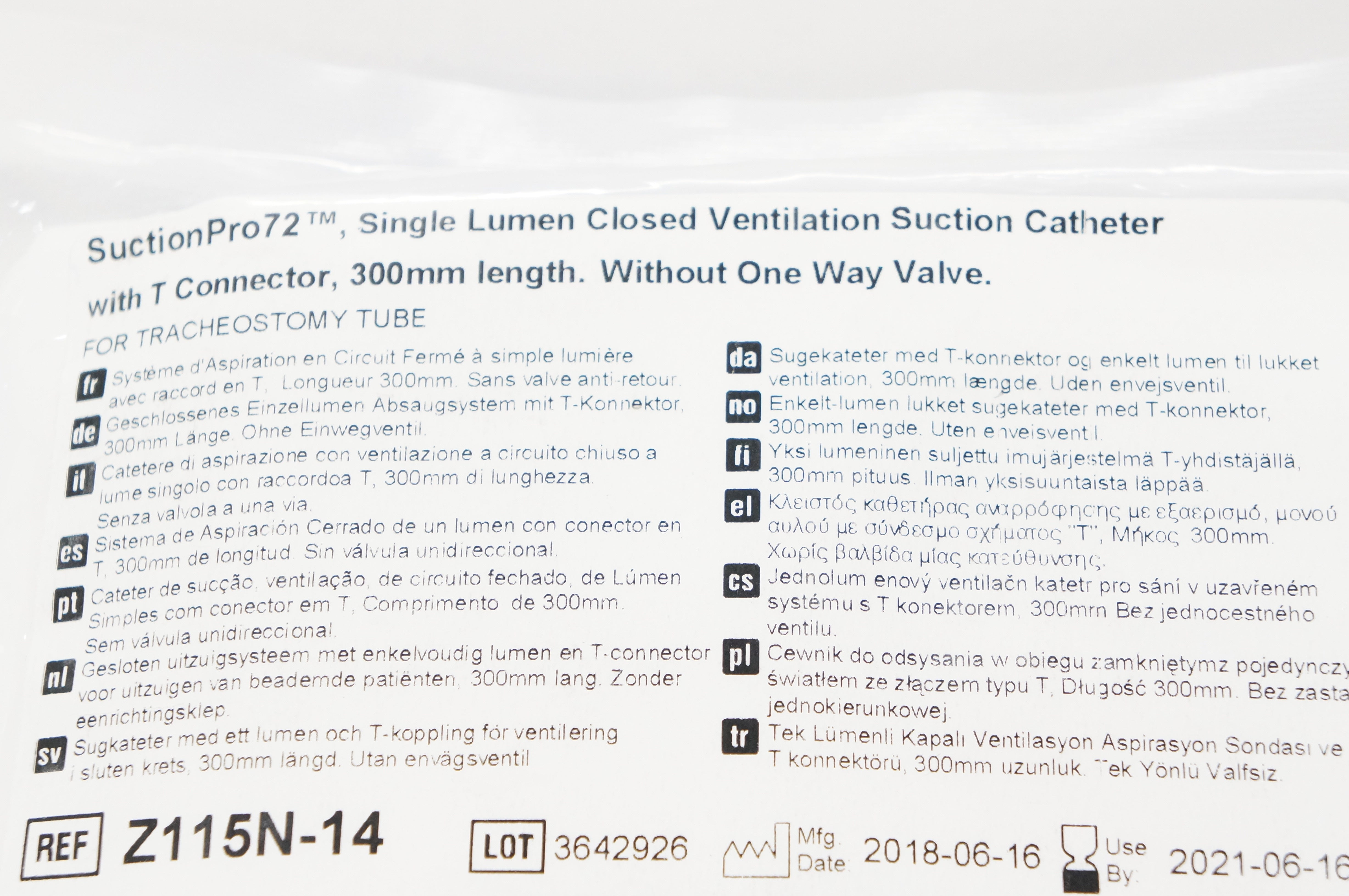 - Portex Z115N-14 SuctionPro72 Single Lumen Closed Ventilation Suction Cath. (x)