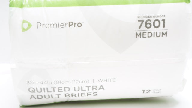 - PremierPro 7601 Quilted Ultra Adult Breafs,Medium 32In-44In,White - Box of 12