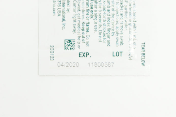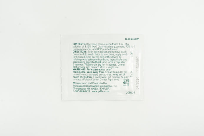 One swab premoistened with 1mL of a solution of 3.15% Chlorhexidine Gluconate, 70% Isopropyl