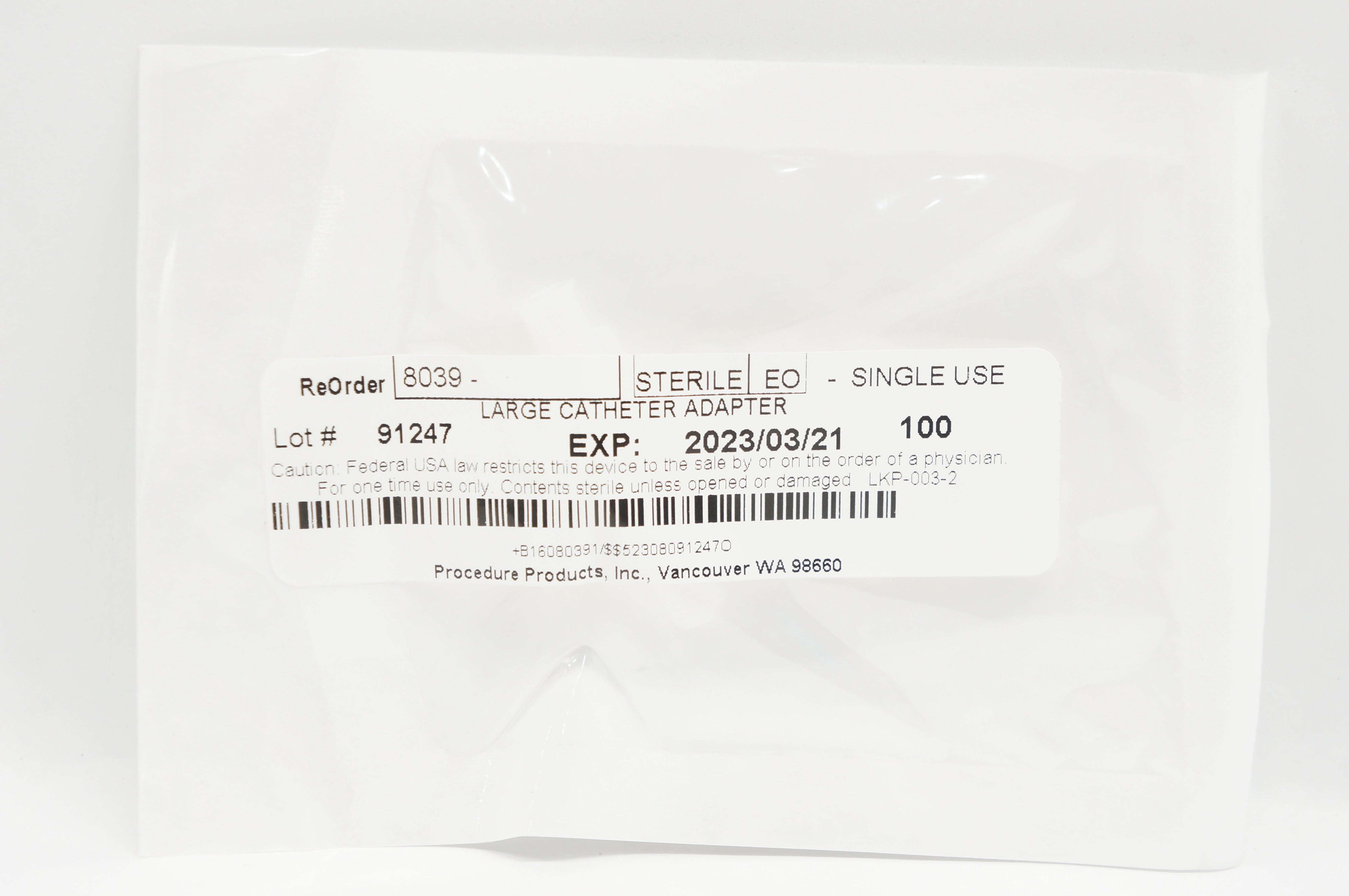 - Procedure Products 8039 Large Cath. Adapter