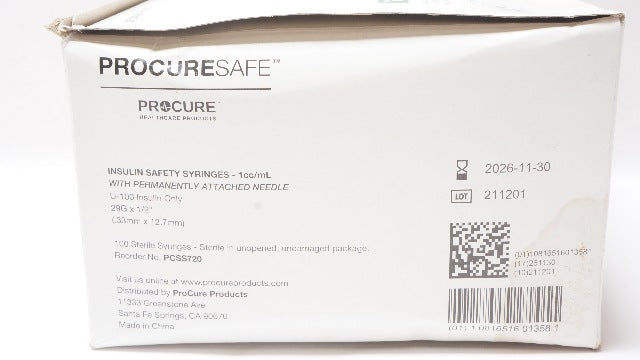 ProcureSafe PCSS720 Insulin Safety Syringes 1cc/ml 29G x 1/2inch